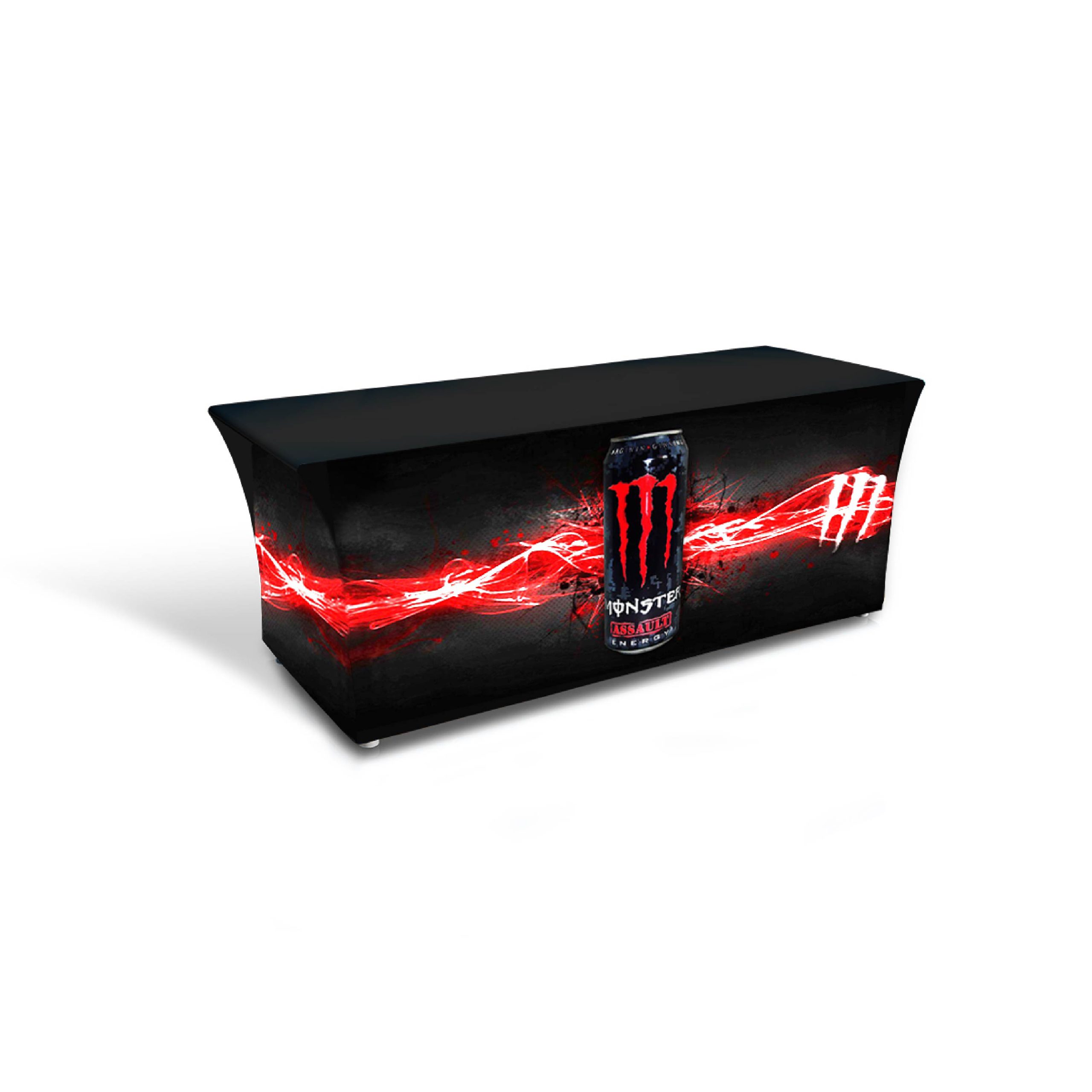 Make your presentation tables elements of marketing for products, brands or just the visual identification of your company. Rectangular shape tablecloths for 6′ and 8′ tables only with standard finishing including a sewing all around or FIT finishing.